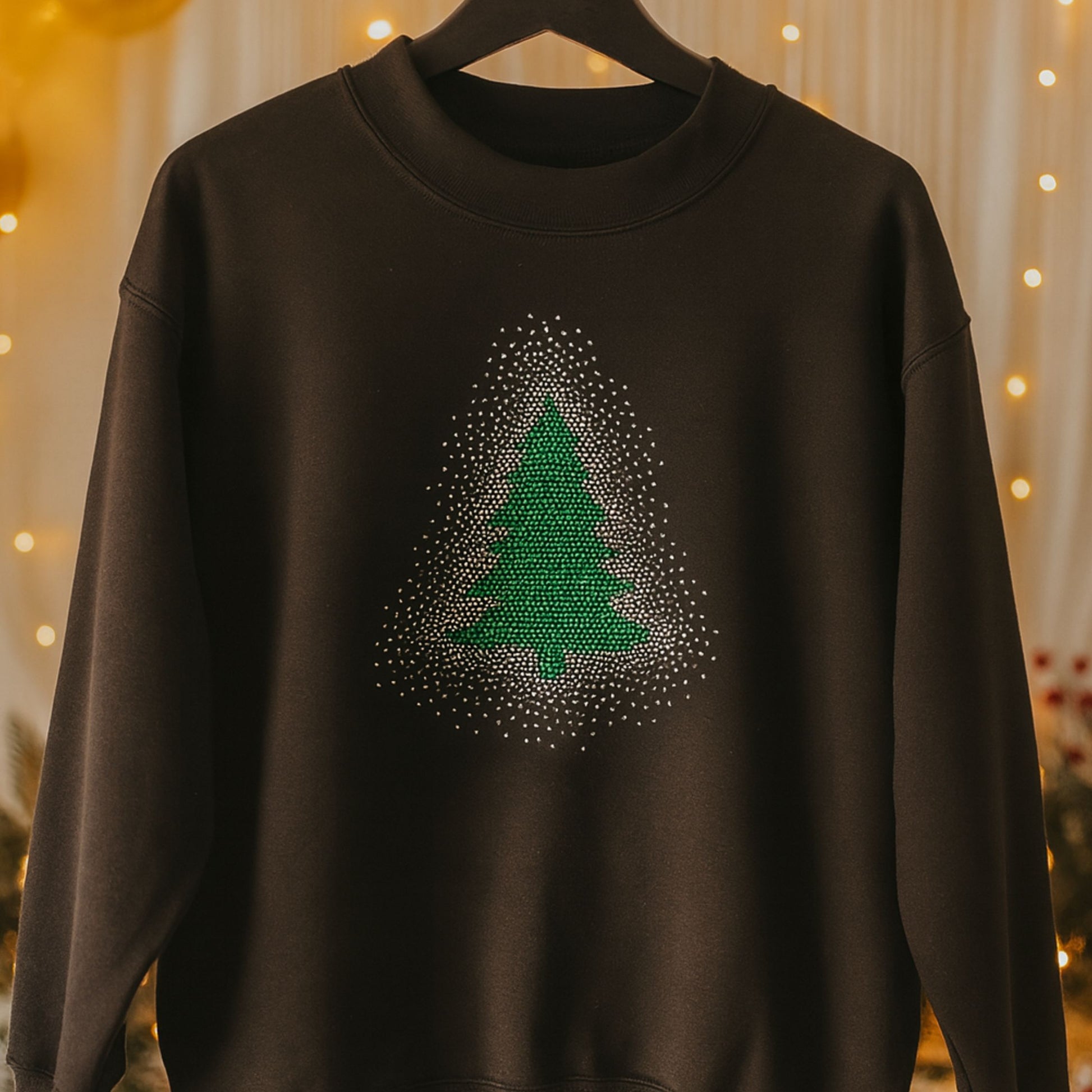 Christmas Tree With Burst spangle transfer brings festive sparkle to any garment. This eye-catching design features a vibrant Christmas tree surrounded by a dazzling burst of sequins that catch the light beautifully. Application is straightforward: heat press at 300°F for 10 seconds using high pressure, allow to cool completely, then peel away the transfer. Perfect for adding holiday glamour to t-shirts, sweatshirts, and more.